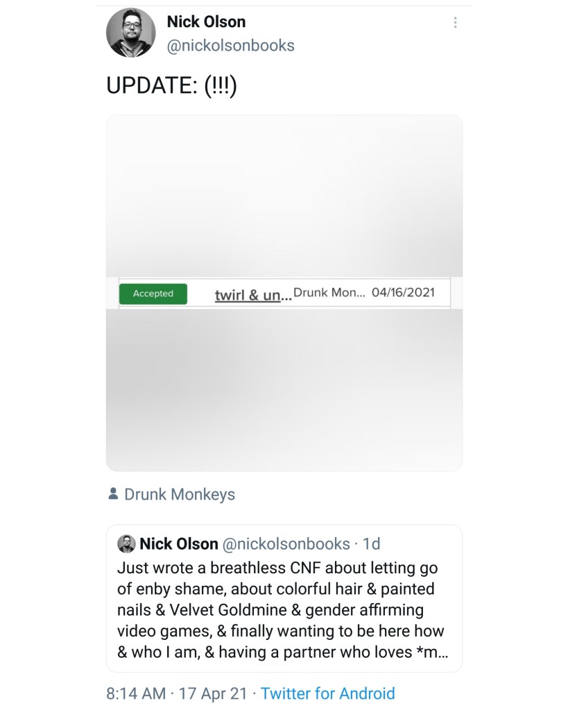 Posted on 04/17/2021 Drunk Monkeys Love! A story in two parts: 😊😁 Share this: Click to email a link to a friend (Opens in new window) Email Click to share on Tumblr (Opens in new window) Tumblr Like Loading... Related