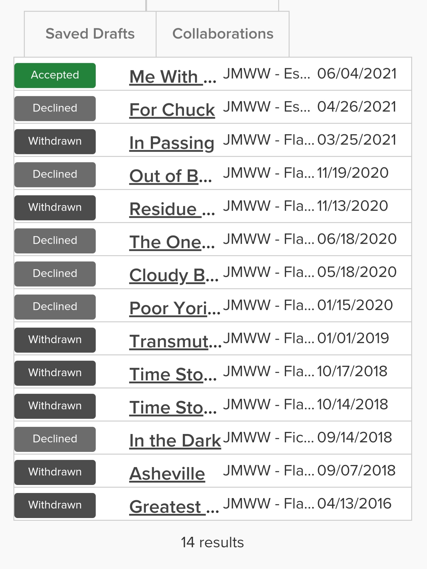 “Me With You,” my love letter to Harmony/CNF about finding someone who will love you for who you are just got accepted by JMWW! Huge thanks to Hannah Grieco for seeing something in this one. For anyone who needs it, your reminder to never give up: