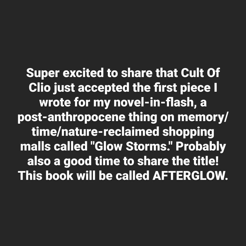 Posted on 10/05/2021 Cult Of Clio Love + Novel-in-Flash Title Reveal! 👀 Share this: Email a link to a friend (Opens in new window) Email Share on Tumblr (Opens in new window) Tumblr Like Loading... Related